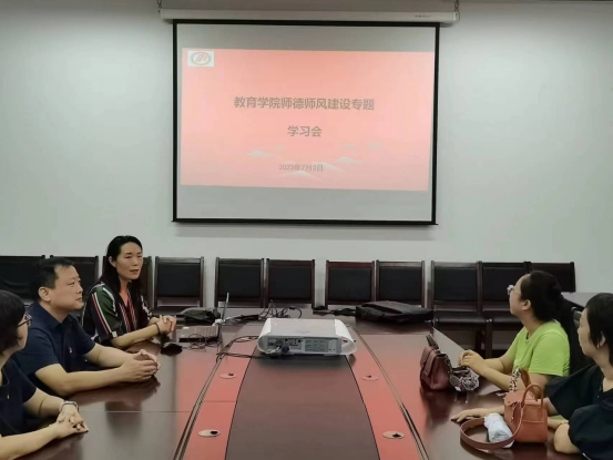 为贯彻落实党政办发〔2023〕21号文件《关于开展师德集中学习教育等相关工作的通知》精神,进一步加强党员教师师德师风建设,筑牢广大教师为党育人、为国育才得初心使命。7月3日,best365中国官方网站教工二支部全体党员教师参加了党总支组织的纪律教育学习宣传月暨师德集中学习教育主题活动。