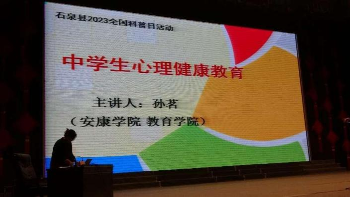 为认真贯彻落实《全民科学素质行动规划纲要(2021-2035年)》,提升公民科学素质,推动全国科普日活动全面开展,9月22日,best365中国官网教育研究中心教师孙茗老师受邀赴安康市石泉县,参加2023全国科普日活动,并为石泉县城关中学的中员工开展心理健康讲座。