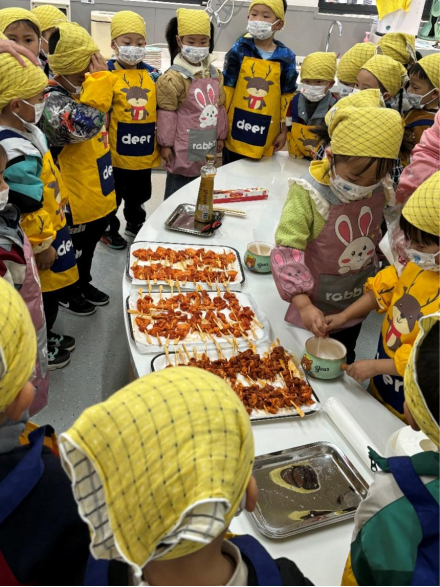 与此同时,见习生们深入课堂对“全民联动日活动”进行观摩,在此过程中观察并学习老师们在活动导入、活动组织、讲课的形式与方法以及从中体现出来的教资教态和班级管理能力,对我们的专业成长都具有一定的指导作用。员工们在观摩幼儿园中班小朋友制作烤羊肉串美食活动中,感受到老师精心的前期准备,将食材处理的非常干净,在小朋友们整个制作的过程中,教师明确制作方法和制作程序,小朋友们基本都能在教师的带领下井然有序的进行操作,大家相互合作,积极参与活动中,过程中教师巡回指导,对个别幼儿在活动中产生的问题进行指导,并对小朋友的制作成果及时进行评价,有利于提高小朋友的积极性和动手操作能力。