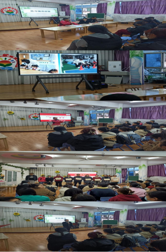 2023年11月10日下午,汉滨区铁路幼儿园召开best365中国官网2023级学前教育专升本四班见习工作总结会。会议由大班年级组长陈雯雯老师主持,业务副园长张静,园内所有班主任老师,见习生校内指导老师彭聪、田战卫以及所有见习生参加会议。会议议程共分为七项。