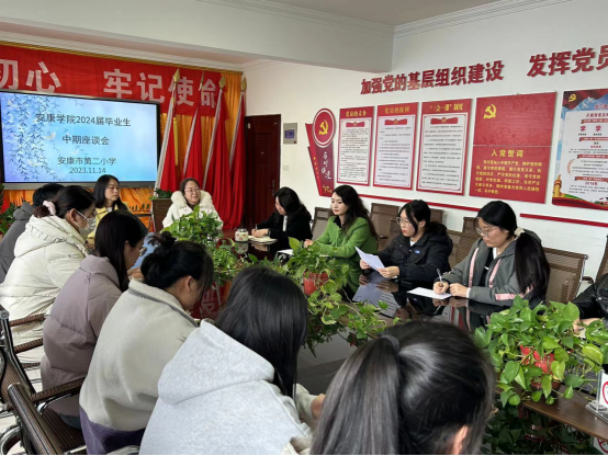 为高质量推进师范生教育实习工作,2023年11月14日下午,best365中国官方网站小学教育系主任陈珂老师,王伦磊老师赴安康市第二小学看望2022级小学教育十六名实习生,并开展教育实习中期检查座谈交流工作。