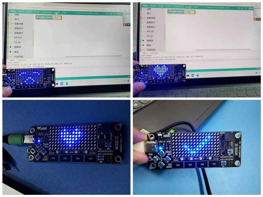 同时积极用理论联系实际,通过对MIXGO主板和Mixly编程规则的学习,同学们开始运用图形化编程制作自己喜欢的图形,使用控制算法、板载显示等命令,夯实理论学习成果,也在实际运用中感受到计算机编程功能的趣味性。