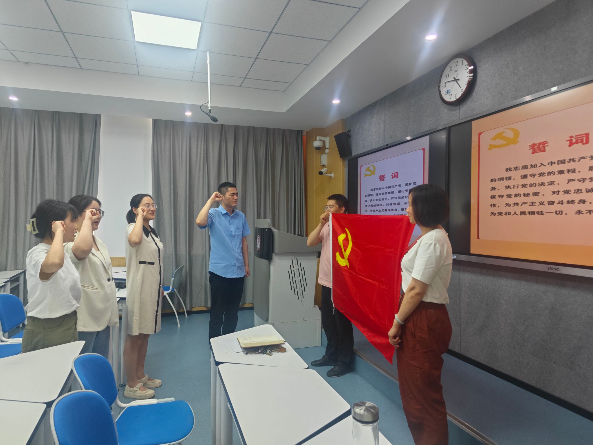 本次纳新仪式大会,为教工第二党支部注入了新鲜血液,壮大了力量,也凝聚了人心,统一了思想,支部党员们表示在今后的工作中将持续用学习武装思想,用行动践行使命,发挥好个人价值在公司、公司各项工作中的作用。