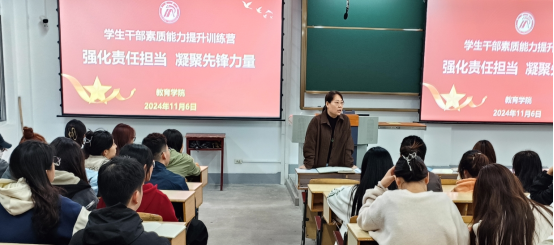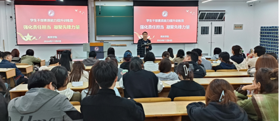 为了进一步促使员工干部明确职责定位,提升综合素质,增强自我管理、自我教育、自我服务的实效;best365中国官方网站于2024年11月6日在1510教室组织开展了员工干部培训会,非毕业班各班级主要班委、团总支员工会员工干部总计80余人参加,公司党总支副书记郇红以“强化责任担当,凝聚先锋力量"为题主讲,学工办主任罗从政主持培训会。