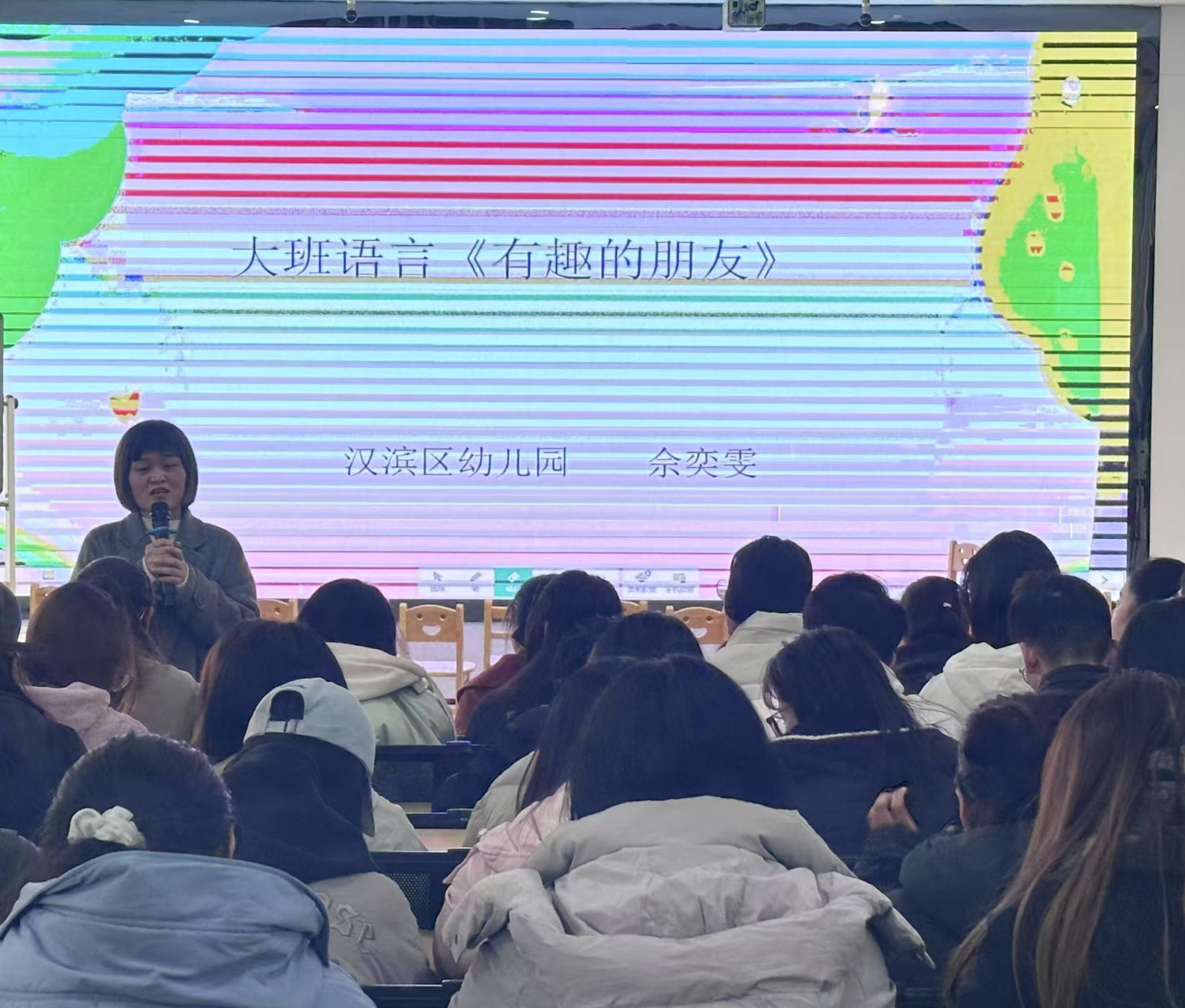 11月27日下午, 《学前儿童语言教育与活动指导》继续开展双师教学活动,学前教育2022级本科1、2班全体同学在公司姜凤坤老师的带领下在汉滨区幼儿园聆听了两节幼儿园优质课。汉滨区幼儿园李敏书记主持了本次活动。何子老师执教的数学活动《疯狂动物城》以探险情景游戏为背景,引导幼儿学习按照一定顺序观察材料,掌握材料按照某一颜色数量递增排列的规律,并通过操作尝试学习进行规律排序,帮助幼儿体会数学游戏的快乐。佘亦雯老师执教的语言活动《有趣的朋友》以绘本《跑跑镇》为载体,引导幼儿大胆想象猜测,感受不同物体在一起碰撞后的神奇变化,激发了幼儿的阅读兴趣,培养了幼儿的语言表达能力。
