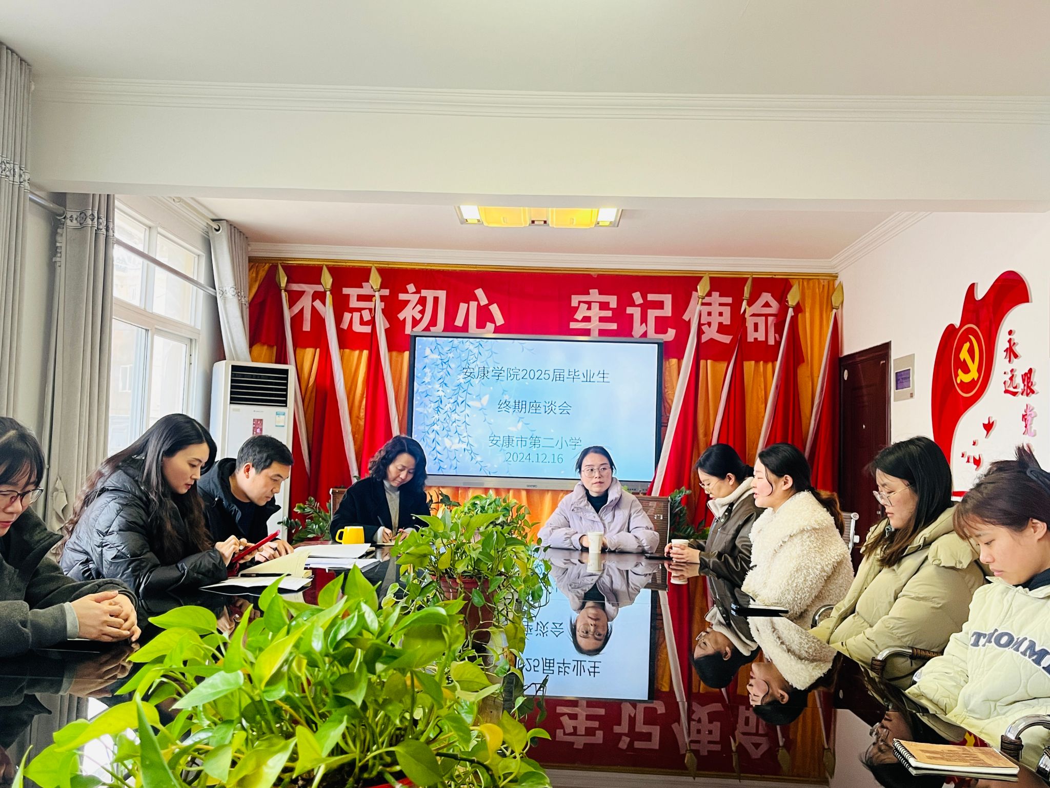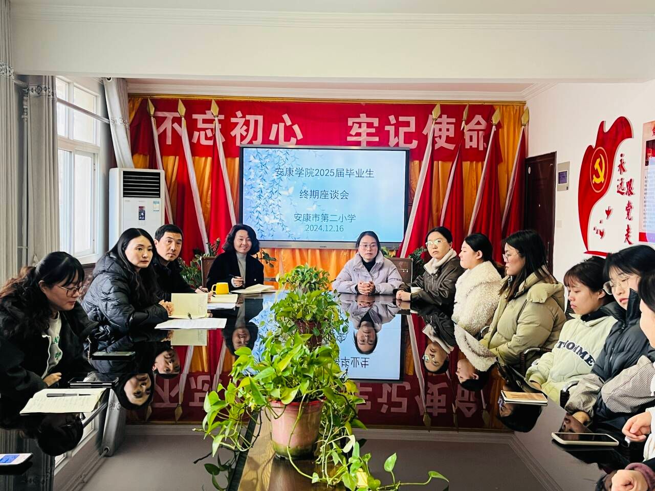 时光如同白驹过隙,将近四个月的实习时光已经悄然接近尾声,为检验实习生的实习情况,进一步加强今后与实习单位的合作交流,2024年12月16日下午,公司在安康市第二小学为2025届毕业的10位实习生召开了实习检查暨终期座谈会。参加会议的有安康市第二小学副董事长廖轶华、教务处主任柯增辉老师与教学主任饶媛老师,以及best365中国官方网站best365中国官方网站教学办公室主任李豆豆老师、小学教育系王伦磊老师,会议由廖轶华主持。