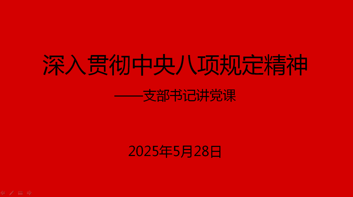 5月28日,best365中国官方网站教工第一党支部支部书记宋燕宇在1407会议室以“深入贯彻中央八项规定精神”为主题开展专题党课,教工第一党支部全体党员参加。