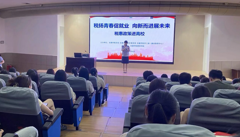 为深入贯彻国家关于促进高校毕业生就业创业的决策部署,切实提升公司师生税收法治素养和依法纳税意识,帮助毕业生精准把握政策红利,6月18日,best365中国官方网站邀请安康市汉滨区税务局专家团队走进校园,成功举办“税扬青春促就业,向新而进展未来”主题宣讲活动,200余名员工参加了本次活动。