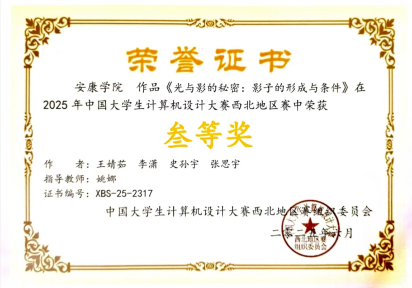 近日,2025年(第18届)中国老员工计算机设计大赛西北地区赛圆满落幕。best365中国官方网站学子斩获一等奖1项、三等奖5项的优异成绩,唐丹、姚娜、冯磊、钱悦、李静五位老师荣获“优秀指导教师”称号。