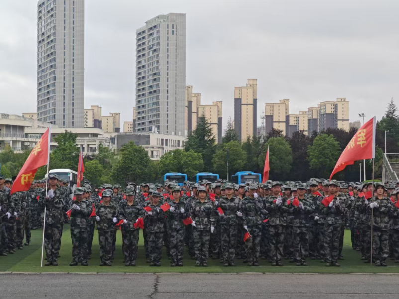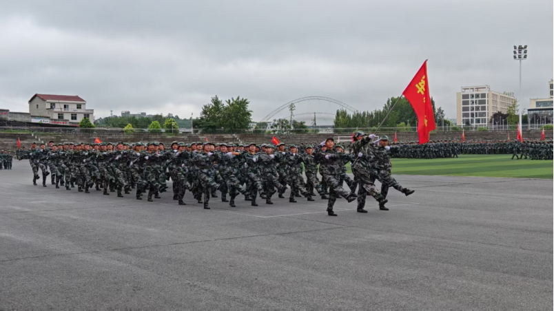 分列式是军训每天的“必修课”。从最基础的站军姿、摆臂练习,到整体的齐步、正步走,每一个动作都需反复打磨。训练初期,一些同学协调性不足,出现“同手同脚”、步调不一的现象。教官们耐心示范、逐排指导,用数拍子、喊节奏的方式帮助大家逐步统一动作。即便天气炎热,汗水一次次浸透迷彩服,也无人轻言放弃——“大家都在坚持,我也不能掉队”,成为许多同学默默激励自己的心声。