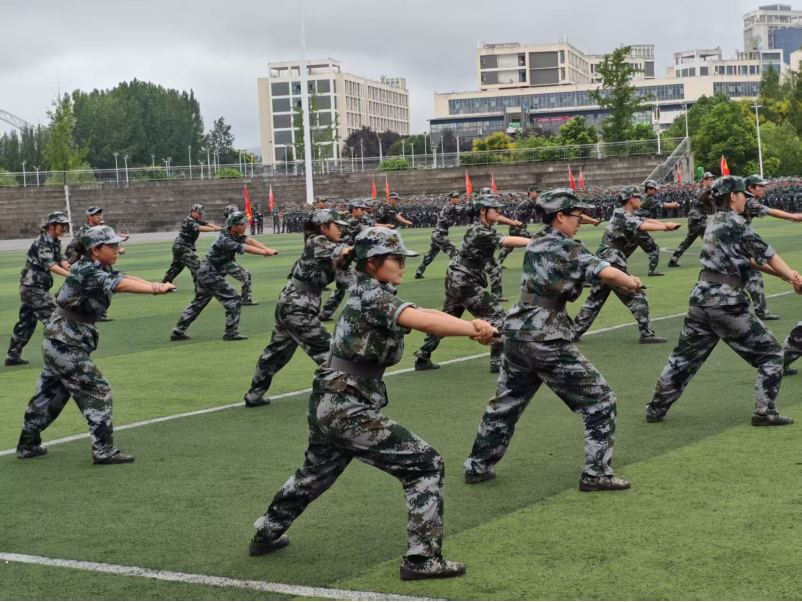 除传统分列式外,best365中国官方网站部分新生还主动报名组成匕首操方阵,展现出别样的“巾帼风采”与“男儿气概”。初期,很多同学动作僵硬、发力不当,甚至练到手臂酸痛。教官从“劈、刺、撩、挡”等基础动作教起,逐一纠正握匕姿势和发力方式,强调“动作要刚猛,喊声要震天”。同学们从最初小声跟喊,到后来全场回荡铿锵有力的“杀!”声,每一次挥匕、每一声呐喊,都是意志与力量的淬炼。
