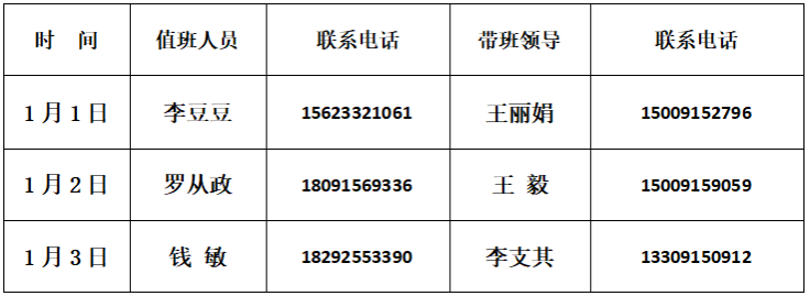 1.认真落实值班责任,严肃值班纪律,信息畅通,确保假期安全稳定。