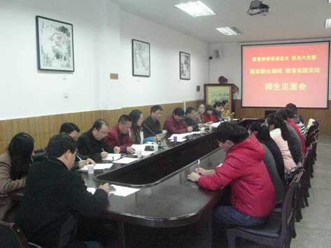 2013年11月19日下午四点,best365中国官网教育科学系党总支和机关六支部在公司第一会议室召开“落实群众路线教育实践活动师生见面会”。