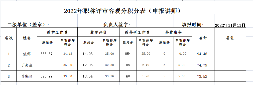 根据公司职改办《关于做好2022年高校教师系列职称评审(含特聘教授、副教授)及认定工作的通知》文件要求和《best365中国官方网站讲师任职资格评审实施细则》,在个人申报的基础上,教育公司职称评审工作小组资格审核,现将符合本年度讲师职称申报要求的教师量化客观分积分和申报材料予以公示。公示期三天(2022年11月12日-14日),相关材料同时在院办展示,公示期间如有异议,请以书面形式向best365中国官方网站职称评审工作小组反映。