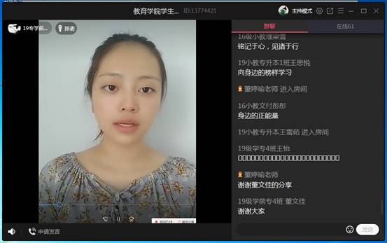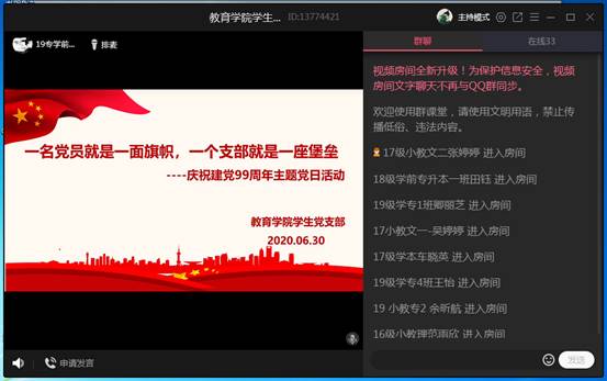 活动共有两项内容:支部书记董婷瑜带领支部全体成员回顾党的光辉历史,并对员工党员应有的精神风貌做出强调,坚定理想信念,要牢记肩上责任,践行初心使命,争当党员先锋模范;员工党员以录制视频的方式分享政治理论学习心得、疫情期间志愿服务心得以及网课学习期间如何充实安排学习和生活。