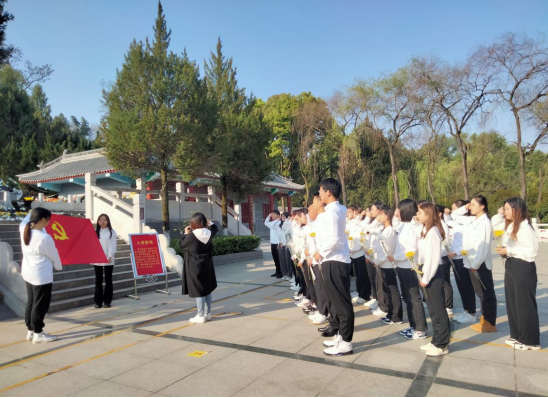 活动第二项:面向党旗重温入党誓词,庄严宣誓。“我志愿加入中国共产党,拥护党的纲领,遵守党的章程,履行党员义务,执行党的决定……”在支部书记邹珊带领下,全体党员面对鲜红的党旗,在安康革命先烈纪念碑下重温入党誓词。