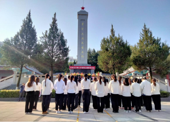 活动第一项:开展祭扫,向英魂敬献鲜花,致敬默哀。铿锵有力的国歌声回响在烈士陵园的上空,在烈士纪念碑前,党员同志们怀着无比崇敬的心情整齐列队,用默哀和鞠躬的方式表达了对革命烈士的无限哀思和崇高敬意,并依次向革命烈士纪念碑敬献鲜花。