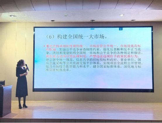 李丽教授从党的二十届三中全会召开背景、会议概况及会议成果、关键改革领域三个方面进行了系统宣讲和深入阐述。李丽结合自身公司产品与科研工作实践,对构建高水平社会主义市场经济体制、健全推动经济高质量发展体制机制、构建支持全面创新体制机制以及完善高水平对外开放体制机制等改革重点内容进行了多方面、多角度的深入剖析,为best365中国官方网站师生党员及班团干部认真领会全会精神提供了全面指导。