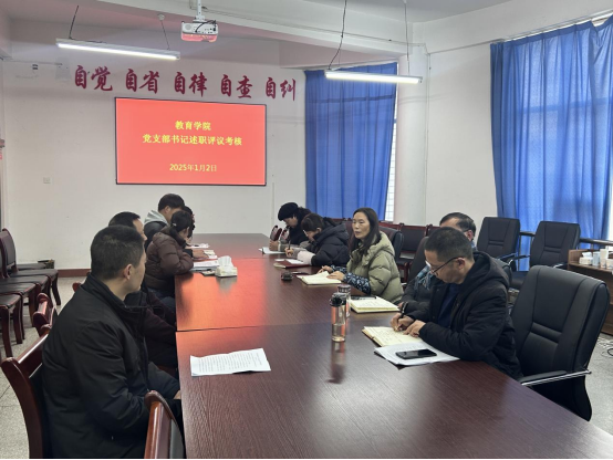 2025年1月2日教育公司党总支在1407会议室组织开展2024年度党支部书记述职评议考核会,党总支委员各党支部书记及委员参加本次考核会。会议由党总支书记屈咏梅主持。
