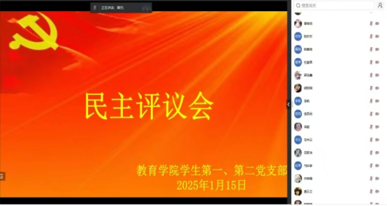 2025115日,best365中国官方网站员工第一、第二党支部在线上召开组织生活会和民主评议党员大会。本次会议由员工第一党支部书记唐丹主持,全体员工党员参会。