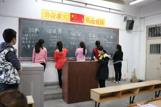 本次竞选本着公正公开的原则,流露的是真诚,流淌的是责任,传承的是精神。本次竞选职位有班长、团支书、学习委员、组织宣传委员、文体委员。竞选开始,首先由同学们自行上台发言,选择自己中意的职位。场上场下气氛活跃,同学积极参加、踊跃发言,在讲台上展示着各自的风采。员工发言结束后,接下来全班进行公开式的不记名投票,有指定同学为投票的同学计票,后交予导员给予最后审核。经过层层选拔,最终班长由刘晓青同学担任,团支书由闫平绪同学担任,组织宣传委员由李致远同学担任,学习委员由肖豆同学担任,文体委员由张艳娇同学担任。