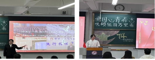为热烈庆祝中华人民共和国成立74周年,厚植员工党员爱党爱国情怀,弘扬爱国主义精神,充分发挥“以党建带团建,以团建促党建”的实效,best365中国官方网站员工党支部联合团总支员工分会共同开展了“党团共建展画卷 欢颂祖国万里春”爱党爱国主题演讲比赛。唐丹、李乙、杨道扬以及团学代表和员工党支部代表担任比赛评委。