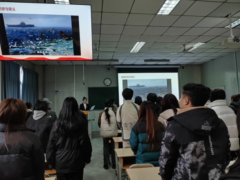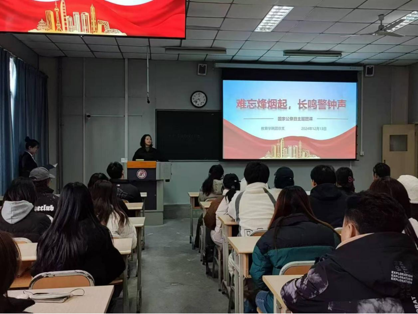 活动伊始,全体人员起立,齐唱团歌,激昂的旋律回荡在会场,展现出青年团员的蓬勃朝气与使命感。活动分为两个环节,首先由李静进行深刻而庄重的团课讲解,李老师以详实的史料、沉痛的语调,讲述了南京大屠杀那段黑暗的历史,剖析了其背后的历史教训以及对当代青年的启示,使同学们深刻认识到国家公祭日的重要意义。
