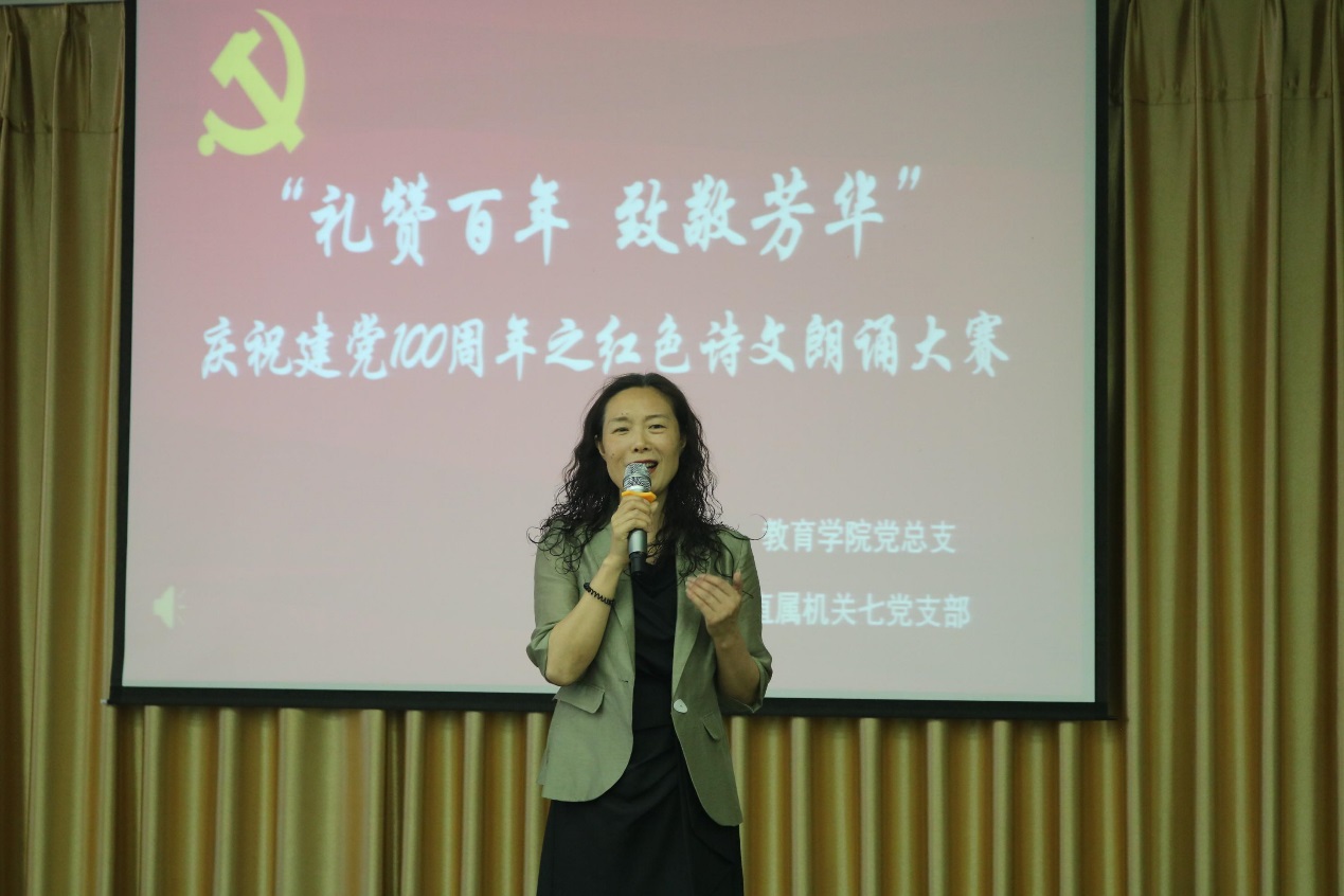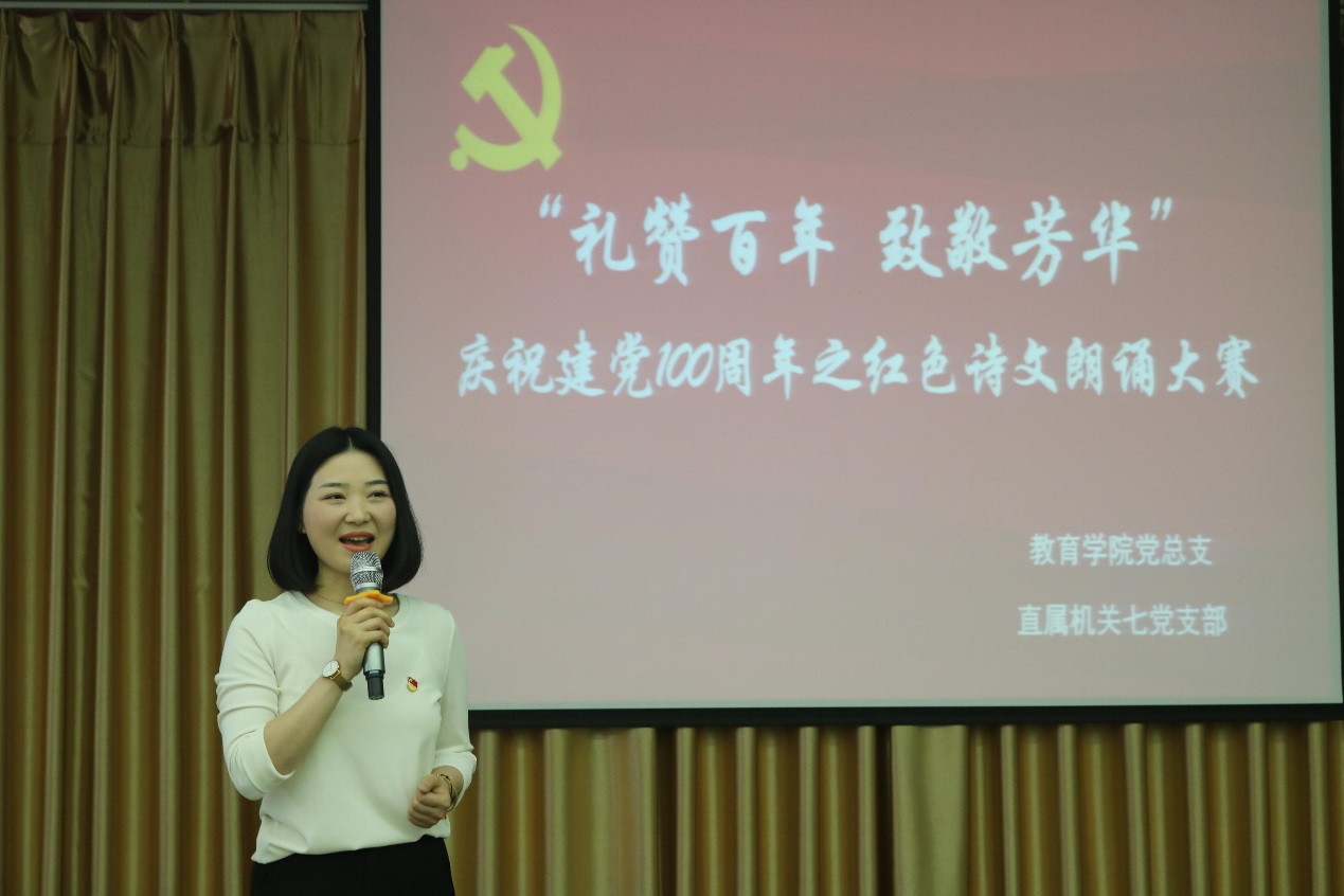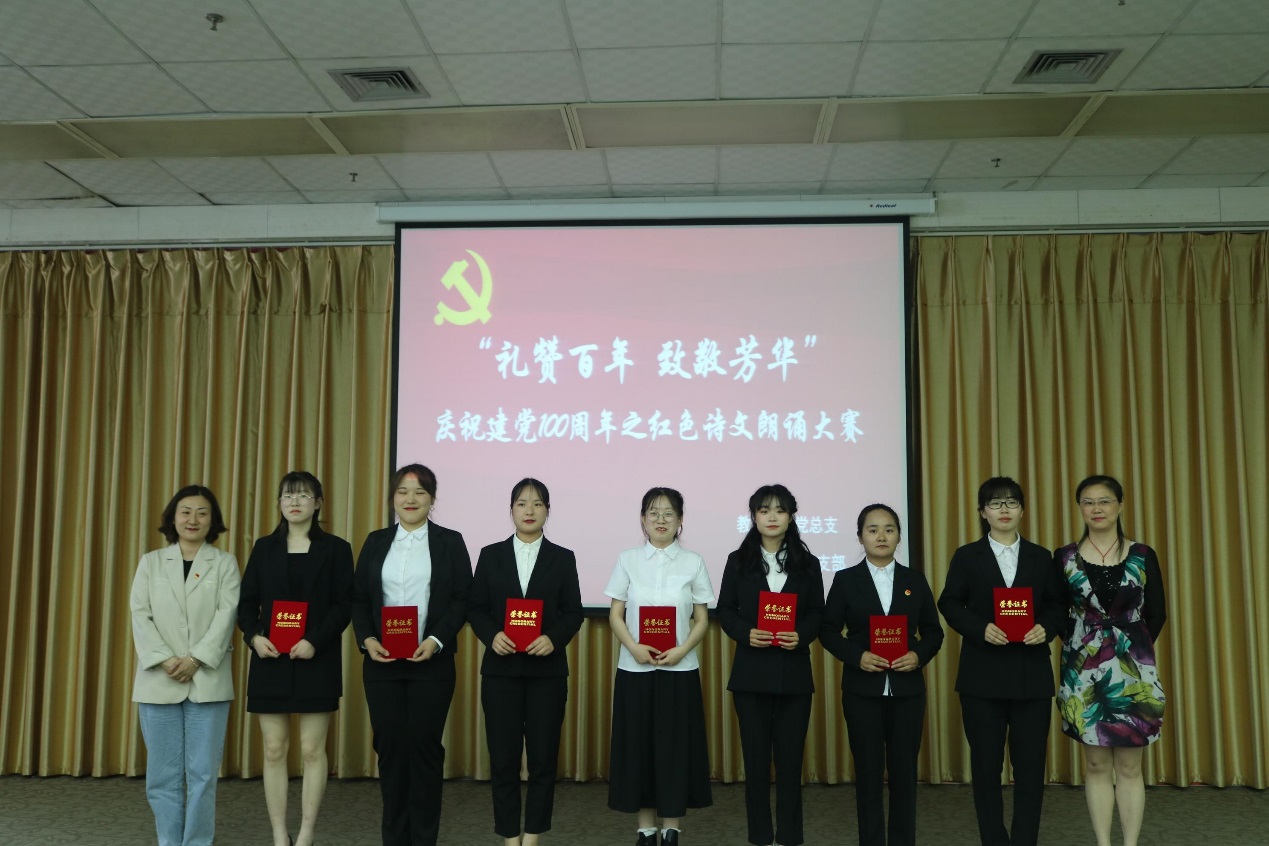 2021年5月19日下午14:30公司党总支与直属机关七党支部联合在图书馆六楼报告厅组织主题为“礼赞百年 致敬芳华”庆祝建党100周年红色诗文朗诵比赛。公司党总支共建党支部直属机关七党支部全体党员、best365中国官方网站全体教师、入党积极分子、发展对象参与本次活动。公司宣传部长鲁延安、直属机关七党支部书记丁义国、公司组织部副部长黄勇、公司学工部副部长黄娟作为特邀嘉宾出席活动。