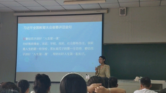 成苗苗老师首先提到了习近平在全国教育大会重要讲话,指出了家庭教育是孩子的“第一堂课”,教育事业离不开家庭、集团、社会的共同努力,应该帮助幼儿扣好人生的第一颗纽扣。