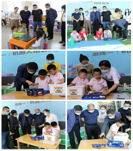 铁路幼儿园向我们展示了人工智能机器人在幼儿园的应用,参观了幼儿建构搭建作品和科学实验室。