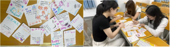 公司团总支员工分会积极参与,发挥专业特色精心准备,征集、制作了手工作品。教师节当天,各班在课前将手工花束、相册、明信片献给授课教师,与老师合影留念,并录制视频,记录下一幕幕温情瞬间。此外,同学们还纷纷通过贺卡、短信向老师表达节日的祝福,通过照片、视频等方式捕捉“我和老师在一起”的动人时刻,展现教师教书育人、辅导员暖心陪伴、行政人员用心服务的点滴细节,进一步拉近了师生距离。