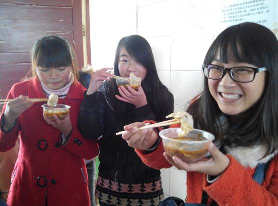 当天一早我们就派出几名同学去超市购买当天包饺子所需要的食材,然后和班级所有同学准时从校门口出发坐车去敬老院,到达地点后,敬老院负责人和所有的老人们都非常开心地迎接我们此次来访。接着部分同学带着食材去厨房为老人们准备饺子馅,另外的同学分别为老人表演早已排练好的节目,为老人剪指甲,聊天说话。老人们都显得很激动,很开心,对于我们的节目表演也都是掌声不断。饺子馅做好以后我们大部分同学都一起包饺子,其乐融融的气氛让大家都乐开了怀,没有一点因无法回家过节的哀愁,还有的同学为老人清洗脏衣,即使那冰凉刺骨的水冻得她们的手通红,但她们依然咬牙坚持把衣服洗完,还有同学帮助老人清洗红薯,削红薯皮,打扫卫生,晒被子等。就像是一家人一样,使我们这个节日过的无比的温馨愉快。在包饺子的过程中,我们大家各显神通,包出了各式各样的饺子。最后老人们都吃到了我们大家精心为他们包的爱心饺子,看着他们脸上那满足的笑容大家也都很开心,照顾老人吃完饺子后我们大家才开始吃着同学与自己亲手包的饺子,心情激动万分,觉得手里的那碗饺子胜过所有的山珍海味,那种美妙是别人体会不到的。在离开敬老院时我们为老人们演唱了我们的班歌《和你一样》和一些歌曲大合唱,在老人们不舍得眼中我们也依依惜别,并答应老人,下次还会再来。这次难忘的活动为每个同学都留下了一个美好的大学回忆。
