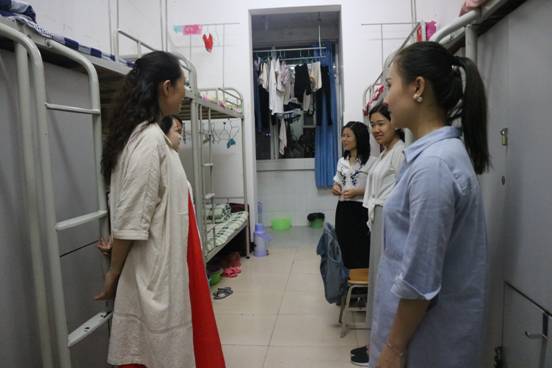 9月6日晚公司迎新工作落下帷幕,当晚公司党总支书记屈咏梅、经理黄路阳、教学副经理权大学、科研副经理王丽娟、办公室主任王胜文和全体辅导员深入新生宿舍看望新同学,详细询问同学们来校后的生活学习情况,和同学们亲切交谈,给同学们提出一些尽快适应老员工活的意见和建议,同学们也畅所欲言,纷纷表示初来公司师长的关怀让他们感到了长辈的爱意和家的温暖。