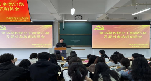 为了让新一期入党积极分子、发展对象深入了解培训班的内容、目标及培训过程在党员发展中的重要性,让学员们以良好的精神状态和明确的规矩意识顺利进入培训学习状态。2023年11月3日,best365中国官方网站员工党支部于1510教室召开了第56期积极分子和第27期发展对象培训动员会。