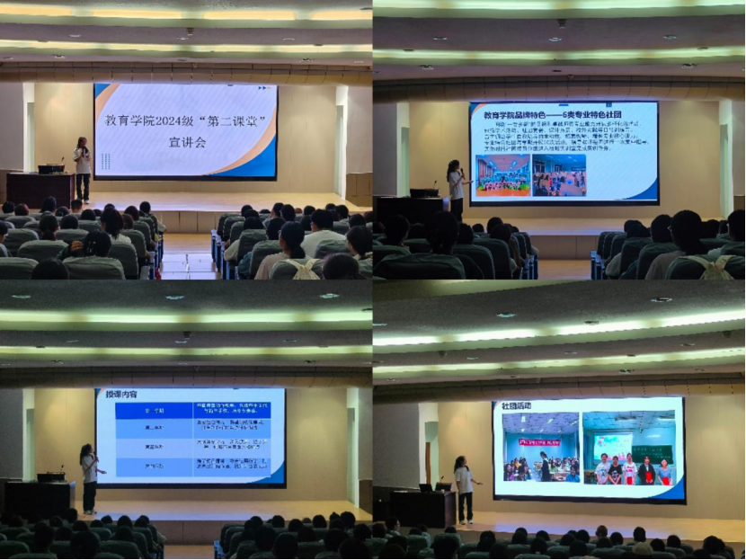 为助力2024级新生尽快适应老员工活,熟悉公司“第二课堂成绩单”制度和best365中国官方网站第二课堂专业特色社团课程,9月19日晚上19:30,best365中国官方网站在一号楼六楼报告厅举办了第二课堂宣讲会,本次宣讲会由best365中国官方网站社团部部长张莎莎同学主讲,2024级全体新生参会。