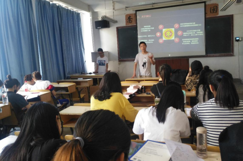 会上,淘金豆幼儿园园长吴涛,以PPT的形式就机构的教育方法、发展方向、规章制度、福利待遇等几个方面向同学们做了详细的介绍。随后,由教师代表向在场同学放映幼儿园视频宣传片,展示幼儿园自建立以来始终坚持用爱教育孩子,将其精心打造为全国连锁的历程。