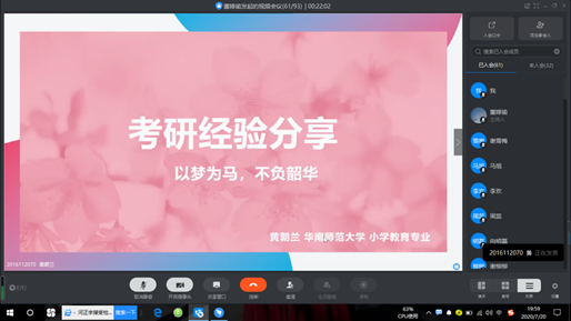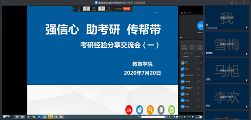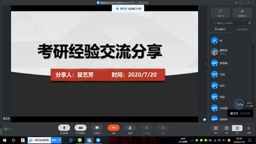 为帮助备考2021年研究生考试的员工更好地了解考研形势,明确考研规划,调整复习方法,减轻心理压力,营造良好的考研氛围,best365中国官方网站7月20日通过钉钉软件举办第一期考研经验分享交流会,由best365中国官方网站2017届毕业生李月星、2018届毕业生翟艺芳、2018届毕业生朱沈玮以及2020届毕业生黄朝兰主讲,员工党支部书记、辅导员董婷瑜主持,2017级80余人参会。