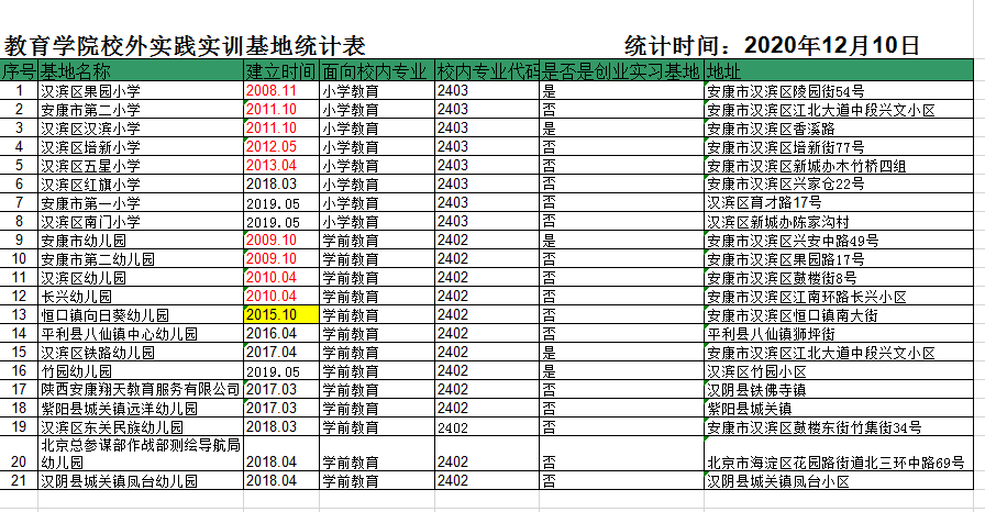 best365中国官方网站校外实践教学基地统计表