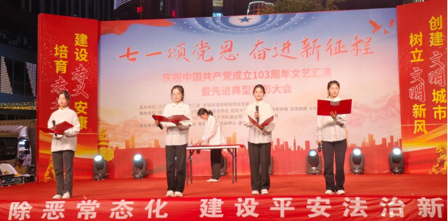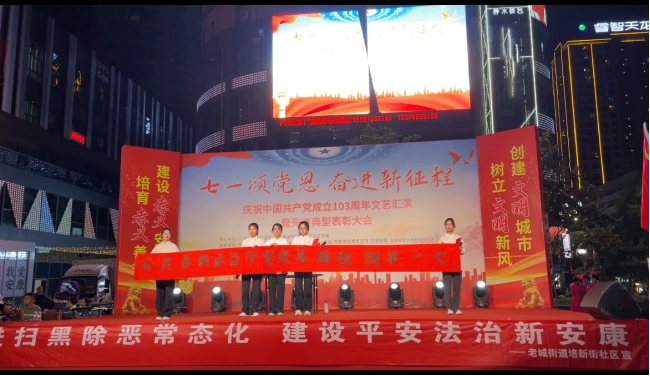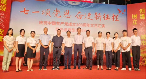 随后,13个精彩节目接连上演,教育公司员工第一、第二党支部为培新街社区精心准备了舞蹈节目《爱你》、诗朗诵《红船从这里启航》以及“庆七一”书法作品展示,通过精彩表演歌颂了中国共产党一路走来的拼搏精神,书写了对党的敬意和感恩之情。