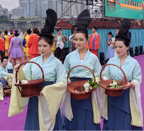 在接到演出任务后,公司高度重视,学前教育专业教师吴晓雨、辅导员李诗娟全程负责节目策划、编排以及参演员工的组织管理,20余名员工利用课余时间进行排练,克服炎热天气,艰苦训练,反复练习完善每一个动作,力求在舞台上呈现最完美的表演。最终公司员工们积极参与了“龙舟祭祀”环节,身着青绿汉服的女子们手持竹篮,将粽子抛入江中,追念先贤,展现了汉江流域女子幽雅柔美的姿态以及对先贤坚贞不屈、逆流而上精神的歌颂。整个表演场面庄重而热烈,吸引了众多游客和市民驻足观看,赢得了现场观众的阵阵掌声。