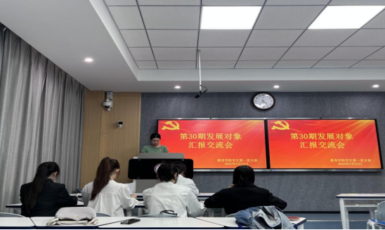 2025年5月23日,best365中国官方网站员工第一、第二党支部分别在1405教室、1516教室召开第30期发展对象汇报交流会。学前教育专业8名发展对象、小学教育专业13名发展对象参会,会议分别由员工第一党支部宣传委员李诗娟、第二党支部书记郑明炬主持。